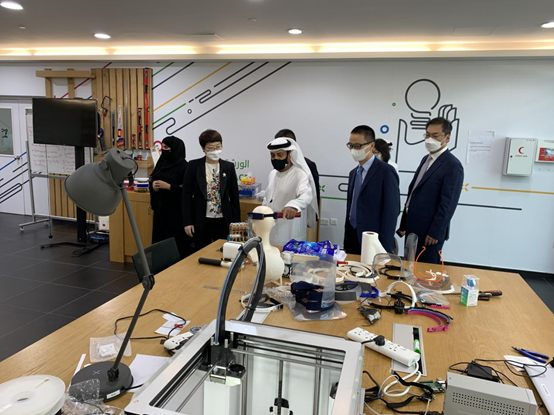 会见后,郑一敏参观了阿联酋大学科技园、商学院,并与阿联酋大学科学院主席苏尔坦·哈吉(Sultan Al Haji)、商学院院长穆罕默德·马迪(Mohamed Madi)交流。