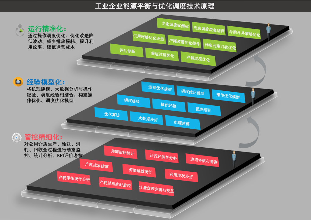 技术原理。针对工业企业中蒸汽、瓦斯、氢气、水、风、电力等能源介质,以大型实时数据库构建智慧能源管控平台,结合时间序列和软测量思想的多能源介质产耗预测技术、基于多能源介质产耗预测数据和整体协同平衡模型的能源系统多周期优化调度方法、不确定性混合整数非线性规划求解技术,建立能源管网智能模拟和能源系统协同平衡模型,研发大型流程企业燃料-蒸汽-电力系统多周期协同平衡与优化调度平台与软件,有效提高模拟和预测精度,快速、稳定、准确给出优化调度方案,实现能源介质的多周期协同优化调度。