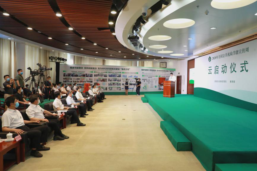 6月29日上午,联合教育部举办2020年全国公共机构节能宣传周“云启动”仪式,国管局、教育部有关负责同志,国家发展改革委、住房城乡建设部有关司局负责同志出席活动。“云启动”仪式通过新华网客户端向全国全程直播,同时展示了教育部节约型机关创建与节能减排工作成效。