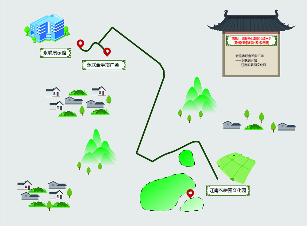 永联村,濒临长江,位于长三角腹地苏州张家港市,是远近闻名的“全国乡村旅游重点村”“国家AAAA级景区”“中国江鲜美食之乡”“中国最具魅力休闲乡村”“江苏省五星级乡村旅游区”“江苏省首批旅游风情小镇创建单位”。永联旅游景区充分挖掘本地农耕文化和江鲜美食资源,将休闲农业、特色小镇、乡村旅游、餐饮美食等要素融合发展,建成了以苏州江南农耕文化园、永联垂钓中心、永联水上乐园、江鲜美食街、永联展示馆为核心景点,集旅游观光、休闲度假、美食购物、会议商务等功能为一体的江南田园生活体验地。
