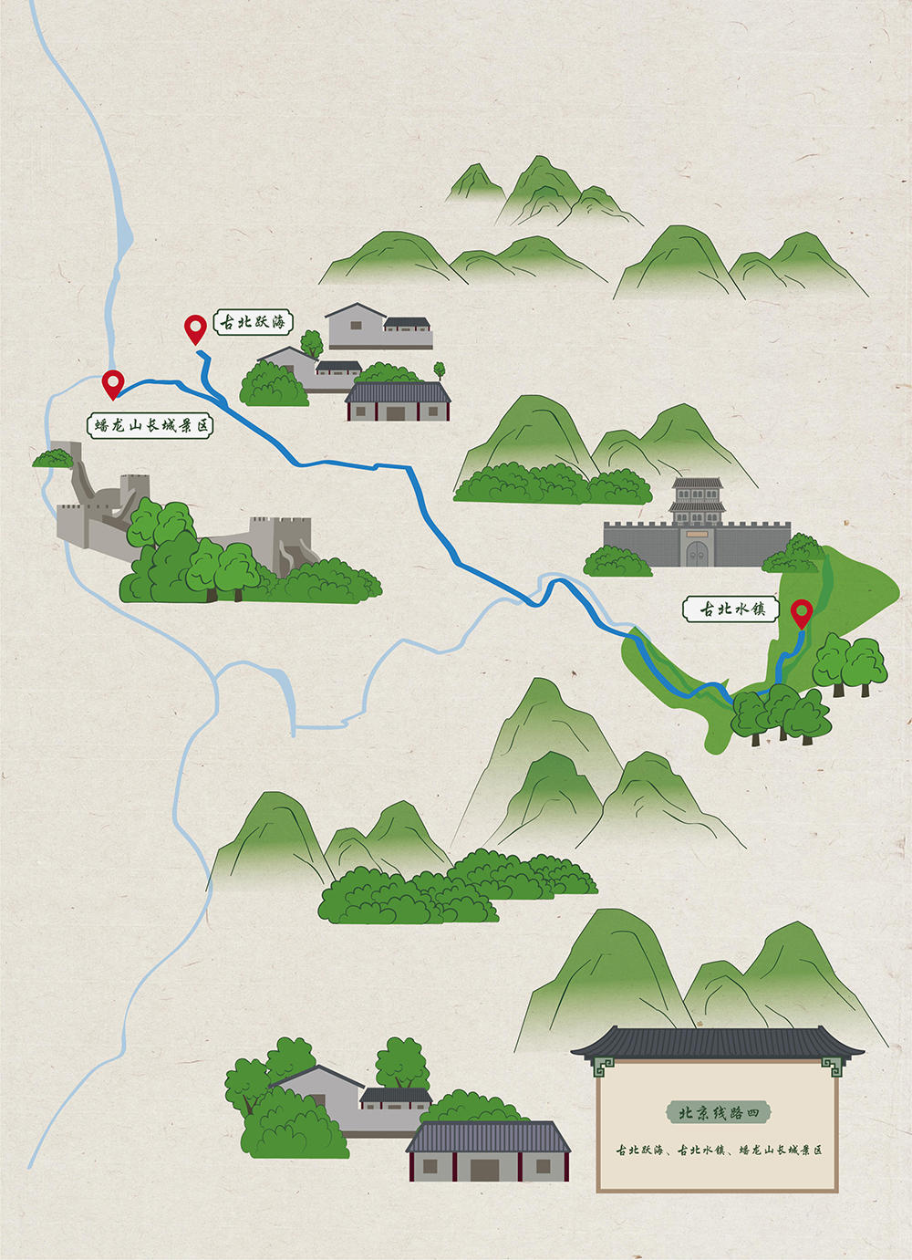 古北水镇的另一处长城蟠龙山长城地势险要,素有“南控幽燕、北悍肃漠”之称,自古为兵家必争之地。在全长5公里的长城上密布着19座敌楼,将军楼和24眼楼是这段长城的建筑精华。