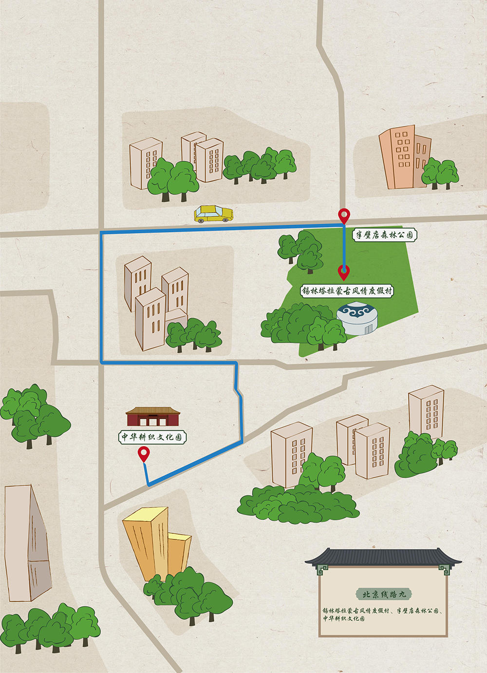 锡林塔拉蒙古风情度假村—半壁店森林公园—中华耕织文化园