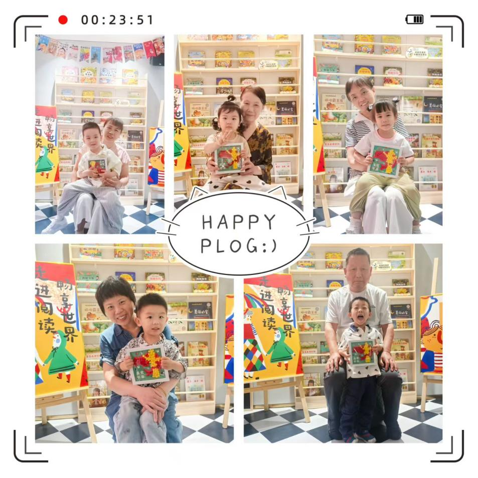 老人与儿童共阅书籍的融合场景