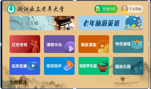 打造线上学习平台—浙江“云上老年大学”,推动实现人人皆学、处处能学、时时可学目标。“大屏小屏”方便实用。建设“电视+手机”两端入口,扩大覆盖面。截至10月,共上线各类课程672门,累计在线学习人数达132.6万人,累计学习总人次达3066万。“线上线下”融合教学。邀请优秀老师线上授课,线下组织全省各地学员学习观看,打造线上线下“一堂教千堂学”。开展浙江“云上老年大学”送医疗送课程送服务活动,深受老年人欢迎。“数据资源”实时掌控。构建多跨协同数字化应用场景架构体系,全面归集老年教育信息,实现全省老年教育数据一站集成、一键分析。截至10月,共归集全省老年教育数据202万多条。