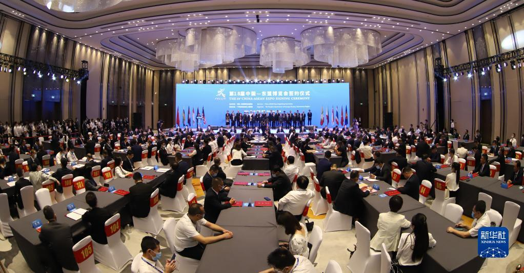这是第18届中国—东盟博览会项目集中签约仪式现场(9月10日摄)。新华社发(广西壮族自治区投资促进局供图)