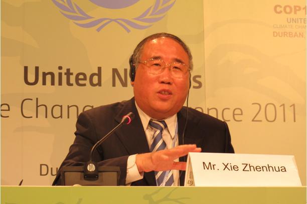 当地时间12月5日,出席德班联合国气候变化大会的中国代表团举行首场新闻发布会,中国代表团团长、国家发展改革委副主任解振华出席并回答了中外媒体记者提问。